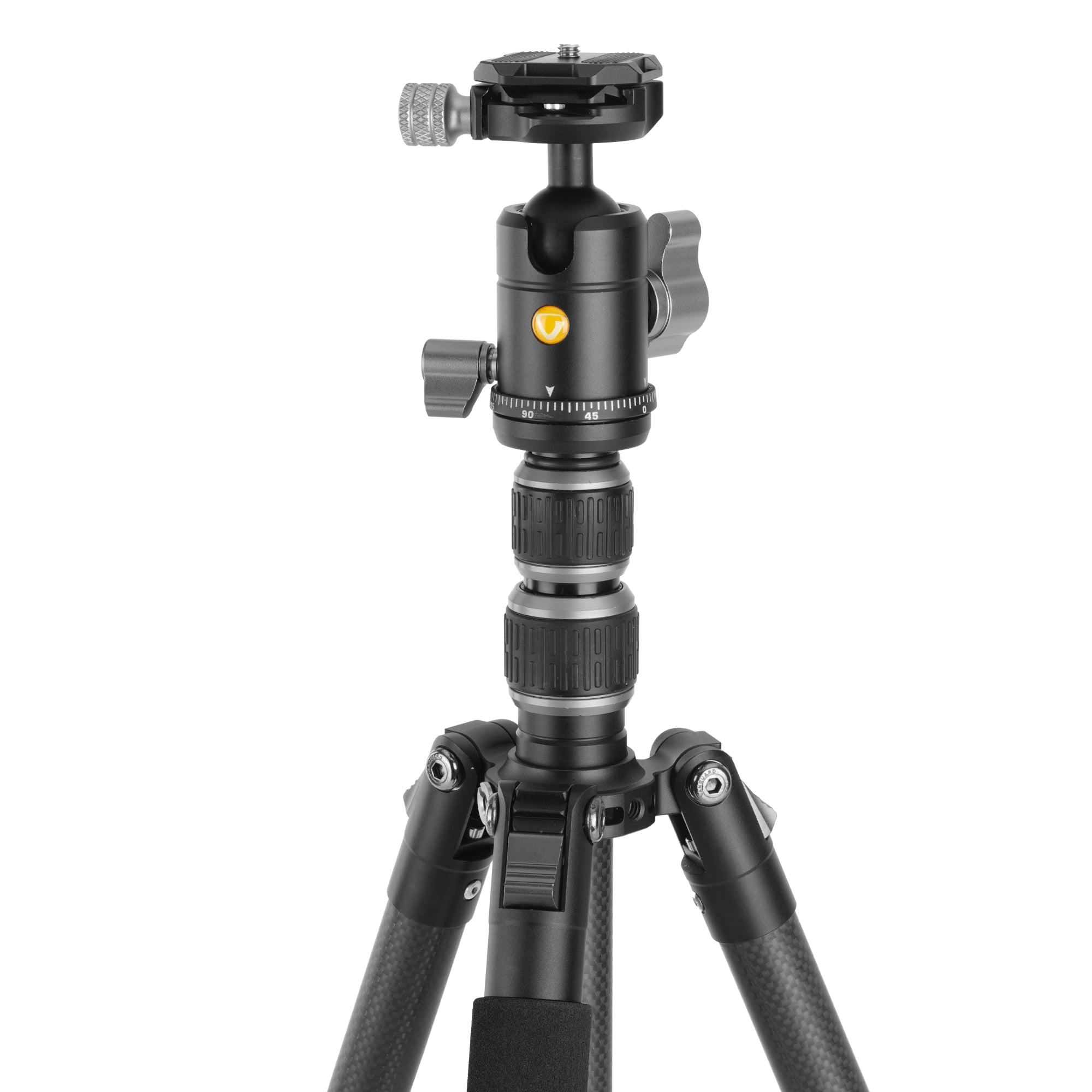 The BH-50 ball head allows you to use any Arca-compatible quick-release plate (QS-45H included). The head also features an independent pan lock plus an ergonomic ball-locking knob that makes it easy to lock it in for your shot, even in cold and wet conditions where you need to wear your gloves. To ensure that you’re not unscrewing the head by mistake as you set your shot, the head is secured to the central column with set screws.